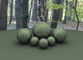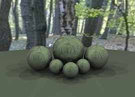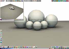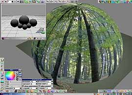 顯示環境 (Show Environment) : 決定在著色時球狀的環境是否要顯示,預設為啟動。如圖 16 及圖 17。很明顯的看出所產生的光線效果是一致的,但是並未啟動顯示環境的圖 17,環景檔案的陰影並未投射物件上。 |