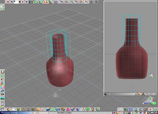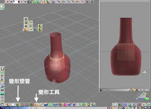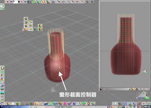 15. 管狀塑型本身所的變形編輯模式為截面變形,故您無須額外的選擇變形工具。根據瓶子的造型來調整變形塑管,如圖 15。