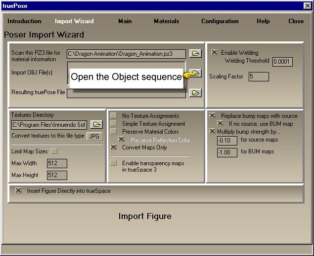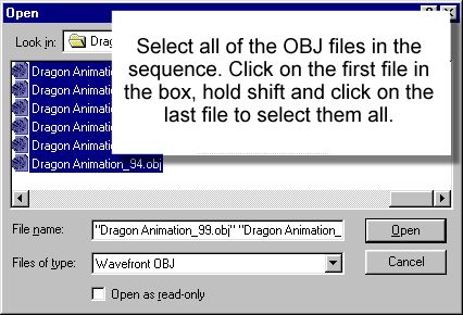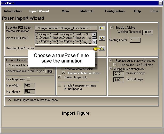 此轉換過程會將 Poser 所匯出的 Wavefront OBJ 序列檔案,轉換 (melt) 為 trueSpace 中的動畫。