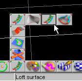 12. 此時正圓形曲線為目前所選取的物件,然後我們要利用「沿路徑延伸表面(Loft surface)」工具,如圖 12a;系統會要求您「選擇軌跡曲線(Pick rail curve)」,請選擇燈柱的曲線作為延伸的路徑,接著就延伸燈柱的曲面了,如圖 12b。在場景的空白處按下滑鼠右鍵,可退出此曲面的三視板編輯模式。