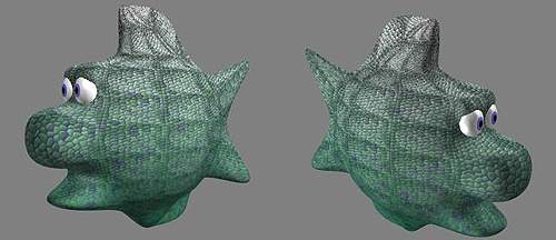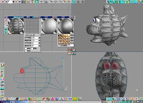 10. 表面彩繪:使用材質編輯器內的表面彩繪工具,將眼珠的位置彩繪,如圖10。此處所使用的是較為簡易的方法,精緻的眼睛製作方式,您可以參考眼睛的製作這篇教學。