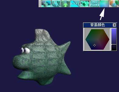 場景著色與光源設定18. 設定背景顏色:在trueSpace右上角的工具列的->背景效果質感樣式: 一般顏色上按下滑鼠右鍵,可開啟背景顏色的色塊設定,調整背景顏色著色後如圖18。