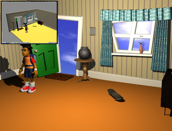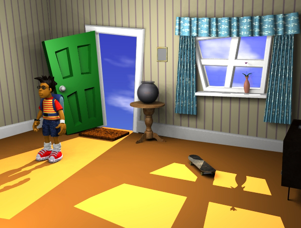 20. 經由多種光線的結合,可以完成相當棒的效果 - 在我們的卡通式場景中結合了上述的三種光源,戶外的聚光燈、室內的泛光燈及室內的環景影像光源。