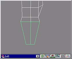 最後同時選取最下面的面稍微縮到合理的腿部尺寸,如下圖 23,那麼下半身的 外型,算是初步完成了,下半身還有屁股的地方,我們稍後再來處理,基本上這個 部位如果不這樣處理,光靠延展的方式來做,那麼將來完成的下半身將會很難看, 這個步驟也算是蠻關鍵的一個地方,因為一體成型的造型在肢體交接的地方是 最困難的,一個處理不好,將來套用骨骼系統的時候,很容易出現凹凸不規則而 且難看的表面,製作技術的優劣從此就可以看得出來了!!