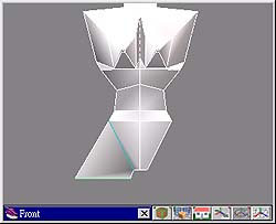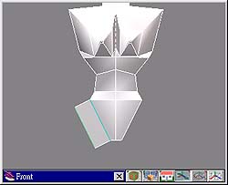 page 7-3 適用版本:trueSpace4.0以上 發表日期:1999.9.4 再接下來,我們要來做出下半身的基準面,首先選取最下方的面,如下圖 17!然後做 延展 1 次,然後縮小這個面,如下圖 18!!