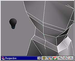 page 7-6 適用版本:trueSpace4.0以上 發表日期:1999.9.4 至此,前半部的地方大致完成了,再來就要修飾背面的部位,由於燈光的方向是照 射前方部位,因而造成背部地方太暗了,影響到巡覽的效果,所以不妨先加一盞光 源,如上圖 41,等到全部完成之後,再把它刪除即可. 背部看起來似乎太平坦了一些,所以只需要選取正中央的控制點稍微往外拉出曲 線即可,如下圖 42 & 43.
