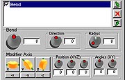 | page 5-2 我們選擇Mesh Forge中任何一個修正器的功能,就會開啟這個功能的調整鍵及動畫錄製功能: 我們先就修正器的功能來一一介紹: 我們使用Mesh Forge中的球體進行示範,解析度(Resolution)為16。 彎曲(Bend) 點選彎曲(Bend)的功能,在堆疊器中會加入一個彎曲(Bend)的修正器,如下圖。同時在下方關於Bend的調整按鈕及動畫(Animate)錄製的按鈕都會出現: Bend:彎曲的角度,用滑鼠控制旋鈕,可以讓球體彎曲。 Direction:彎曲的方向,最大值為360度。 Radius:彎曲的半徑。 Modifier Axis:控制從那個座標軸進行彎曲,預設值為Z軸。 Position(XYZ):控制彎曲的一端的高度。若是朝Z軸彎曲的話,您必須要調整Z軸的Position才有用。 Angle(XY):控制物件整體的角度。 我們以球體進行示範,如下圖,分別是彎曲0、90、180。若是要以變形工具來完成這樣的動作,光是調整就要花上一段時間,但是Mesh Forge很快速就可以完成這樣的效果。