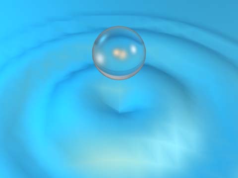 圖十九是漣漪的效果,圖二十是旗子的效果,圖廿一是水波的效果(本圖片是使用trueSpace4著色並開啟質量光)。