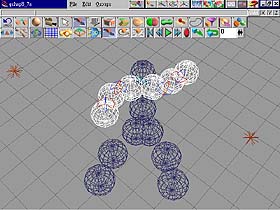 spherical joint“ 我們點選一下“編輯接縫 Edit joints directly“ 同樣的使用“增加 2D 球形的接縫 Add 2D sphericaljoint“ 我們把他做成動畫檔,首先先把動畫張改成20張,再來隨意的讓人型關節移動。 之後按一下“記錄關鍵畫面 record key “便可,再來多重複幾次,多做幾段動畫,便可以啦!,再來把這一段存成動畫檔便可,不錯吧!別猶豫了,快把電腦打開,試試看這一個人物關節處理功能,或者想一想能把此一功能用在哪一個地方,希望此文能對您有幫助,如有任何問題,歡迎寫E-MAIL給筆者,小弟的E-MAIL是paulkoh@ms15.hinet.net。 |