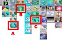 局部著色:快速鍵為Shift+A,您可以自行框選一塊矩形的區域進行著色,局部著色可重複框選著色的範圍,再次點選此工具,可關閉局部著色的操作。 著色選取物件:快速鍵為Shift+O,著色目前所選取的物件。 著色全場景:快速鍵為Shift+S,針對場景中所有的環境、光線、效果設定等進行著色。 著色全場景並儲存到檔案:這是最終輸出為影片或圖檔時的選項。 如果您希望畫面好的作品,必須加入一些設定,雖然這些設定可以增加作品的真實感,但也會增加著色時間。 在這四個著色工具上按下滑鼠右鍵,可開啟輸出著色特效的選項(此排工具列會出現在trueSpace視窗的右上角),很多精美的效果都是由此處設定。