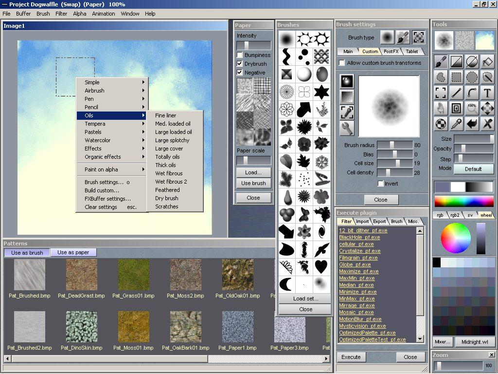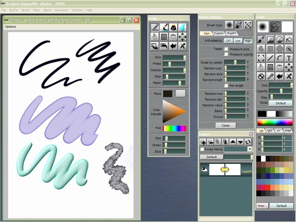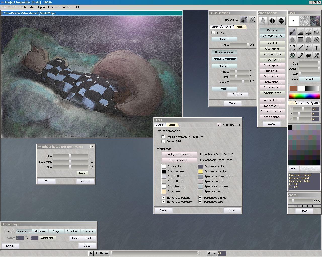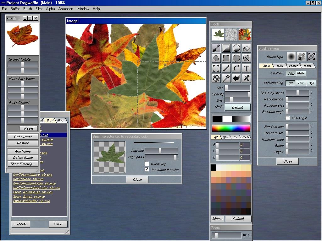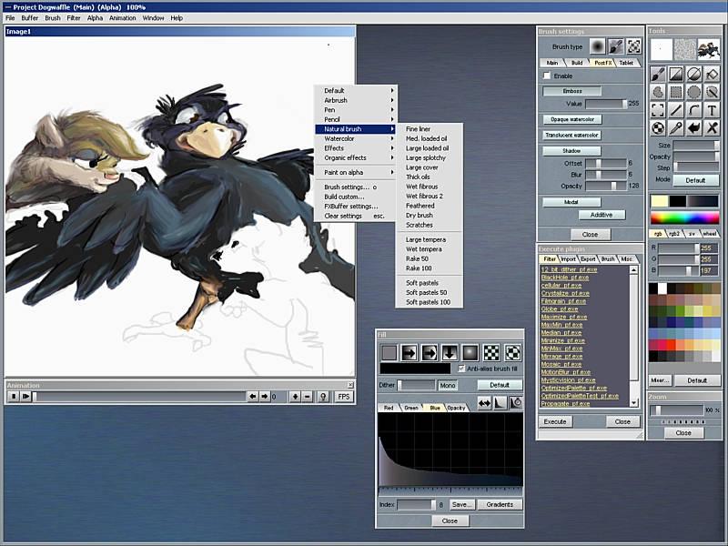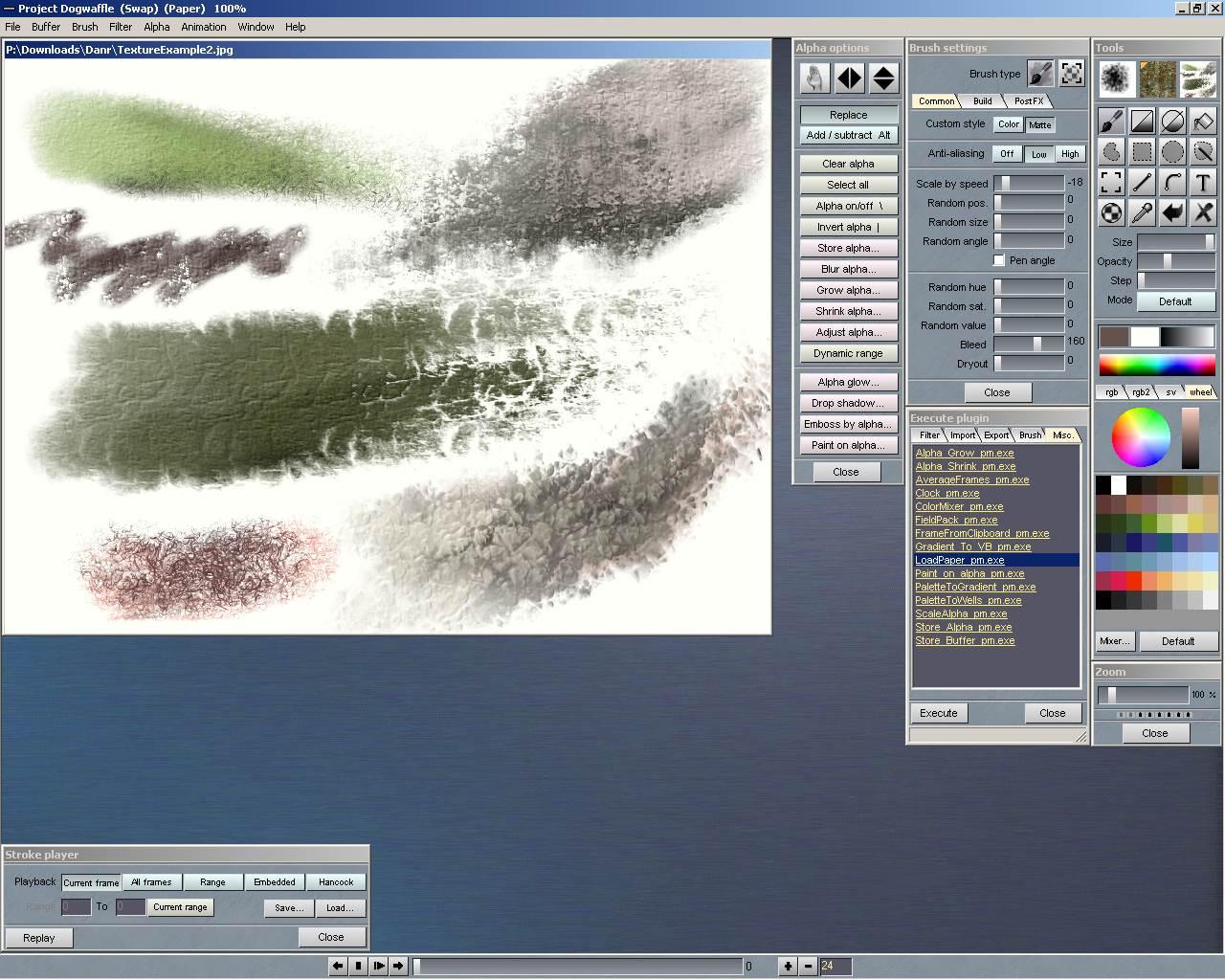 - 完善的 Alpha channel 支援,彩繪於 Alpha 層、套索與魔術棒…等。