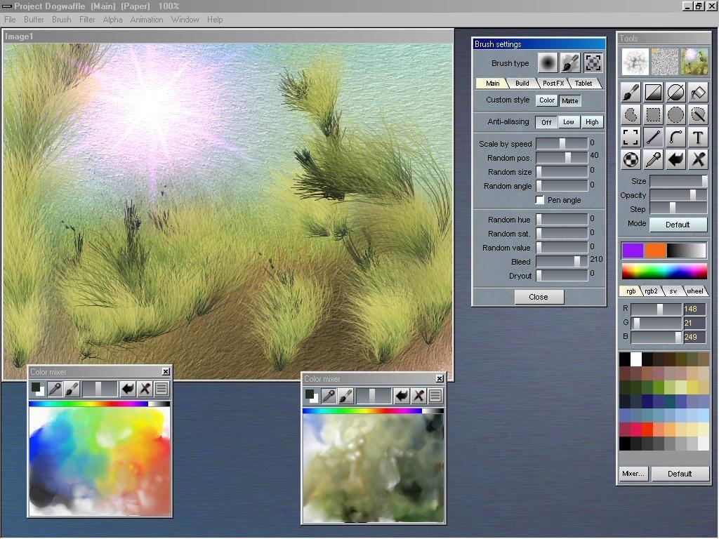 - 快速且寫實美術繪畫工具,紙張與顏料型態,數位繪圖板支援。