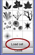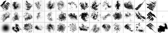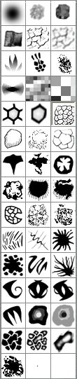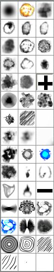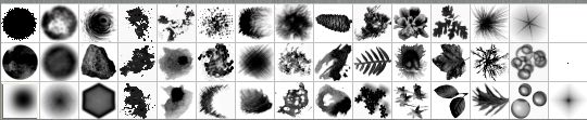 以下的ZIP壓縮檔為筆刷圖片檔,每個壓縮檔包含約30~40個筆刷,當您解壓縮後,它會自動建立一個相同名稱的資料夾,並將檔案放於資料夾中,您就可以從「Brushes」視窗最下面的「Load set..」按鈕來選用了。