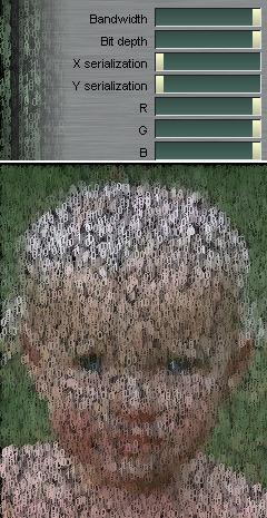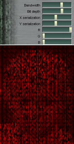 的濾鏡特效,可將影像由文字組合而成,創建出類似駭客任務文字落下的效果。