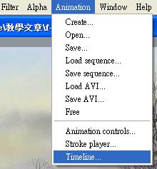 4. 選擇功能表的 Amination\Timeline.. 如圖 4,可開啟 Timeline editor 面板。
