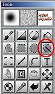 濾鏡特效 29. 其實這個文字範例,可以衍生不同特效的文字,我們將步驟 6 儲存的檔案叫出來。使用 Tool 面板的「Magic Wand」魔術棒工具,如圖 9a。在背景白色地方點一下,現在白色區域為 Alpha 選取區,由於我們是要選取文字,所以請在「Alpha Panel」面板,按下「Invert Alpha」(反轉) 按鈕,如圖 9b,這樣文字就會變成 Alpha 選取區。