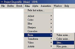 13. 接下來要使用Filter 的功能了,請點選功能表 Filter -> Noise -> Jitter…,如圖 13a,只要將拉桿調到 2 即可,效果如圖 13b。
