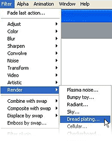 按一下「Filter」功能表的「Render」,然後點選「Dread Plating...」選項。
