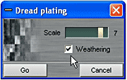 我們再點選Dread Plating 特效,這次將「Weathering」取消,看看與之前的結果有何不同 從圖中可以看出「Weathering」是用來做出像岩石被風或水所風化的效果。另外,嘗試拉桿靠左有何不同的結果。