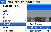 這個 Color Emboss 效果有點類似 trueSpace.中的"凹凸材質貼圖"。 現在隨意的去調整 Emboss (浮雕)設定值,做出您心目中材質。