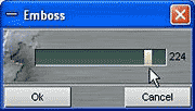 ![]() 左圖就是用來設定的Emboss (浮雕)的面板,而右圖就是做出來的結果。