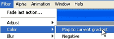 我們要將這個漸層貼上去,這個漸層顏色會對應目前工作區的像素,請使用 Filter > Color > Map to current gradient