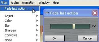 這個顏色有點怪,太亮了而且不真實,所以我們還需要做一些修飾,要用什麼工具才能做到我們要的結果呢?? 接下來要介紹的是「Fade last action」,它是意思是將之前的步驟做顏色漸減。