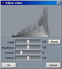 這個選項可以讓調整 Contrast(對比)、Gamma 等等設定值,在這個範例中我們可以降低 Contrast 到 41,如左圖。著色結果如下圖: