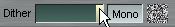 填滿/漸層面板還有些小工具,例如在七種填滿的型態下方有一個「Dither」拉桿,它是用來設定雜質,拉桿愈靠右側雜質愈明顯示,拉桿右邊會出現小方塊以顯示雜質效果;「Mono」按鈕是用於加入/取消彩色的雜質。 |