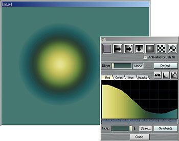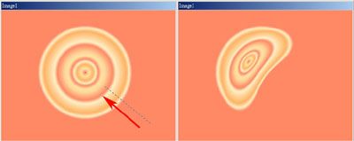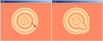 在畫布上拉出一個圓形,漸層將分佈在圓形內部,圓形外部則是漸層最右側的顏色。 |