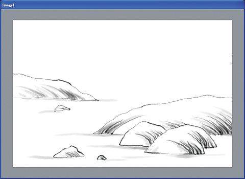 12. 為遠處增加些遠景,需要注意的是水墨畫重要的是濃淡效果,因此越靠近前方位置的墨色會濃一些,或者深一些,相反的越遠的位置就越淡些,如圖