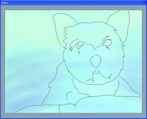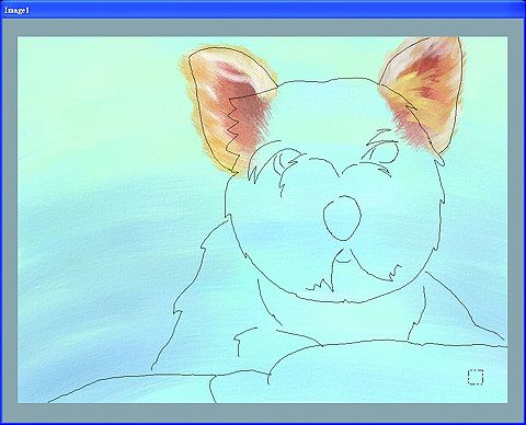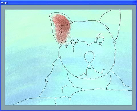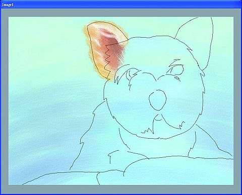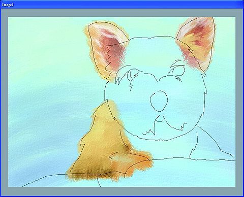 構圖與上基底色10. 選用一個顏色與一個類似「Pen」的筆刷樣式,繪製狗狗的外型,如圖 10。您也可以先行繪製在紙張上,然後再掃描成檔案,作為底圖使用亦可。