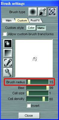 15. 接著是左耳朵的毛,如圖 15a。在此可能會遇到設定的筆刷太粗,這時可以回到「Brush setting」面板的「Custom」標籤,更改「Brush