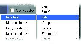 24. 首先為眼睛填上底色,利用彩繪工具的「Oils / Fine liner」筆刷,如圖 24a,並將「Size」、「Opacity」數值分別調整至最大值,也將筆刷本身的紙張紋路取消,如圖 24b。