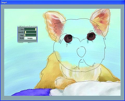 26. 將「Opacity」數值調低一些,並將彩繪模式 Mode 設定為「Multiply」,如圖 26,繪製眼睛的陰影部分。