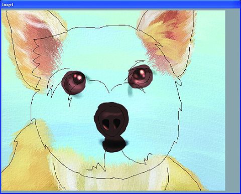眼睛上色23. 在上頭部的毛色之前,先將眼睛、鼻子、嘴巴部分完成;其中鼻子與嘴巴的範圍可以稍為放大一些。 |