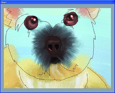 臉部上色29. 開啟「Media manager」選擇當初設定筆刷名稱,並將粗細調整開始繪製臉部毛底色。 |