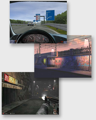high-end 3D engine, a 2D engine, a physics engine, a map