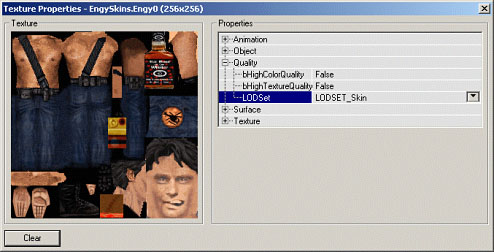 the LODSet setting to LODSET_Skin. The Chat texture needs