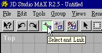 3. 接著請在 Front 視窗中把 Model 的正面面向自己,如圖 4。 4. 按下 Select and Link 按鈕,如圖 5,使 Model 具有關聯性。