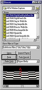 | page 5-5 適用版本:Life Forms 3.5 + 3D Studio MAX R2 以上 發表日期:1999.9.6 3. 點選人物,在選擇 File->Browser,會出現 Browser 視窗,如圖16。