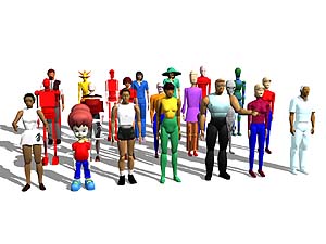 Forms 格式 Life Forms 中的 PowerMove1&2 除了提供近 1000 組的人物動作之外,還提供 了 25 組不同的人物模型,如圖6,您可輕易的直接使用這些內容 (Content) 在您的動畫中。