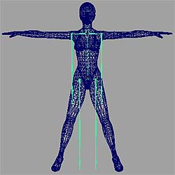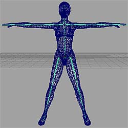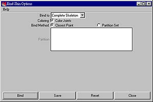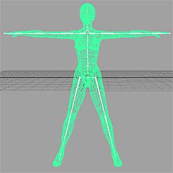 9 按下Bind,我們已經將皮膚貼上骨骼了,如圖10。 現在我們已皮膚貼上骨骼,接下來的步驟便是套用動作資料。 |
