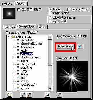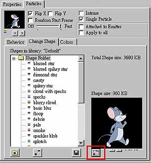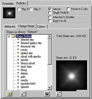 Illusion 提供約 20 種的分子形狀,請在 Emitter 屬性對話方塊中按下「Particles」標籤,再點選「Change Shape」標籤,您可以看到一排清單,如圖