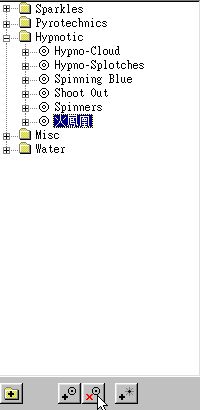 若要刪除 Emitter,請在資料庫視窗按下右鍵,在快顥選項清單中點選「Properties」,此時會開啟 Emitter Properties 對話方塊,在方塊的左側會出現與資料庫視窗一樣的樹狀結構。在此點選 Emitter,在下方有四個按鈕,請按下有「X」符號的按鈕,如圖 43,即可刪除。 基本上,我會習慣先從 Library 中選擇 Emitter,將 Emitter 先加入到舞台中,然後再調整 Emitter 的各種設定值,做出我所需要的效果,然後在新增到資料庫中,這樣比較不會更改到原始的資料庫。 從前面的介紹中我們已經可以看出,Emitter 的參數稍加調整,就可以創造出全新的分子效果,恐怖吧!! 下次再為各位介紹 illusion 的一些應用上的範例。
