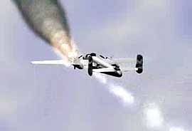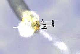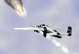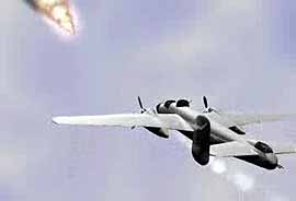 來襲的火箭飛機受到火箭的攻擊。