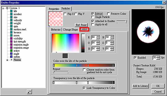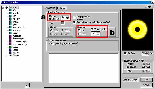 圖 12 3. 接著要去做參數的調整,對 Corona 1 按下滑鼠右鍵選擇 Properties,出現 Emitter Properties 對話方塊,在 Properties 標籤中,調整如下: