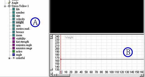 ¨BÆJ 3¡G±N²{¦b®æ¼Æ³]¬°¡u1¡v¡AµM«á½Õ¾ã Emitter ªº Weight °Ñ¼Æ¡}¹Ï 3 ªº "B"¡~¡A§ÚÌ·|µoı«ç»ò½Õ¾ã³£¨S¦³®ÄªG¡A³o¬O¦]¬° Particle/Weight ³]¦¨"0"¡C