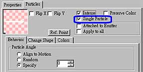 調整參考點在圖 3 中,將參考點移到 Arrow 的尾部﹙如圖 4A﹚,然後將分子調為單一分子,如圖 5,Particle/Spin 將值調整比 "0" 小,會逆時針旋轉,如圖 4B。