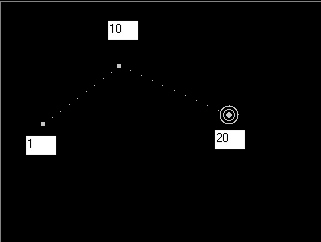 2. 如何在路徑上選擇關鍵畫格「舞台視窗」中有 20 格運動的 Emitter,分別在第 1、10、20 格,各有一「關鍵畫格」,「關鍵畫格」以正方形小格顯示,一般畫格以 "點" 來呈現。